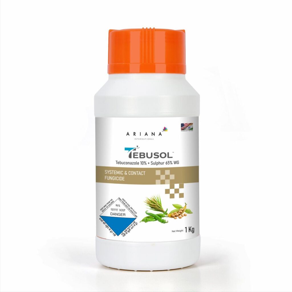 Tebusol™ is a unique fungicide that combines the systemic action of Tebuconazole with the contact action of Sulphur. It effectively controls a wide range of fungal diseases including powdery mildew, rusts, leaf spots, and blights in cereals, pulses, vegetables, and horticultural crops.